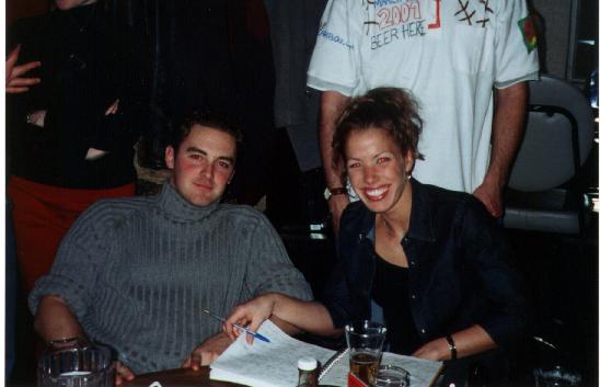 There's Pierre and Kirstin doin' the sign in thing. Tic Tac shirt in the background